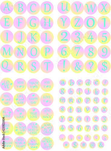Digital Alphabet Stickers Gift Stickers Printable Circles 1 2 Love Words Glamorous Style Stock Vector Adobe Stock