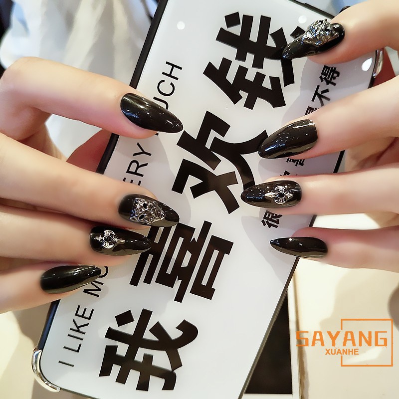 Amazon Com Eda Luxury Beauty Black Luxe Design Full Cover Press On Nails Acrylic Nail Kit Artificial Nail Tips False Nails Extra Long Sharp Round Pointed Almond Stiletto Nail Art Super Fashion