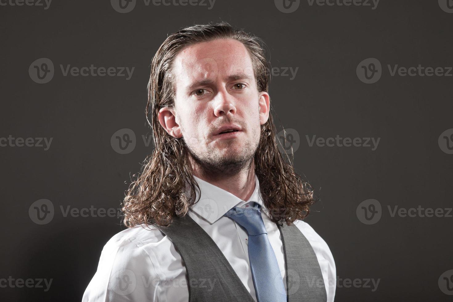 Young Man Long Hair Expressive Face Wearing Suit And Tie 1219320 Stock Photo At Vecteezy