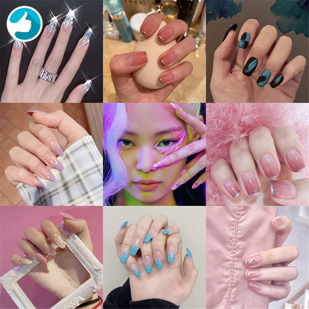 Glitter Acrylic Nails Ombre French Fake Nails Art Tips Pre Designed Shopee Philippines
